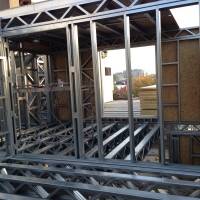 ![]() | Se scot extrasele de material, se depun în lucru pe laminor, se pune rola cu otel zincat si se executa productia de material. Pentru o casa de 120- 160 mp, acest proces se executa intr-o singura zi, incredibil, fara rebuturi. În ce alt sistem constructiv mai este posibil un asemenea ritm, la o asemenea precizie? Raspuns: în niciunul. |