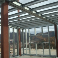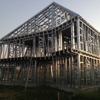 ![]() | Se trece la confectionarea individuala a panourilor. Se monteaza structura metalica, se fac circuitele electrice si santitare, se pune vata minerala, se aplica panourile interioare si exterioare din OSB. Totul se face în liniste si curatenie, cu grija si maxima atentie. Comparati cu o lucrare facuta in afara, în soare sau ploaie, si întelegeti diferenta. |